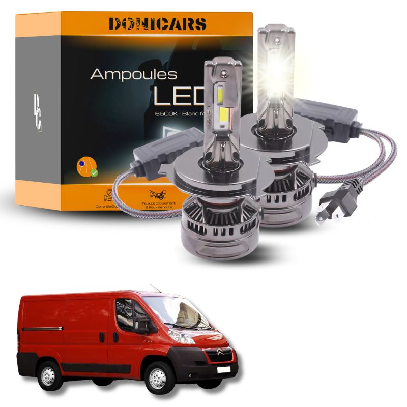 Remplacez aisément les ampoules halogènes traditionnelles de votre Citroën Jumper (1994 à 2006) par nos ampoules LED H4 grâce à la technologie Plug & Play. Aucune modification nécessaire : profitez d'une lumière blanche pure de 6500K qui améliore la visibilité tant de jour que de nuit.