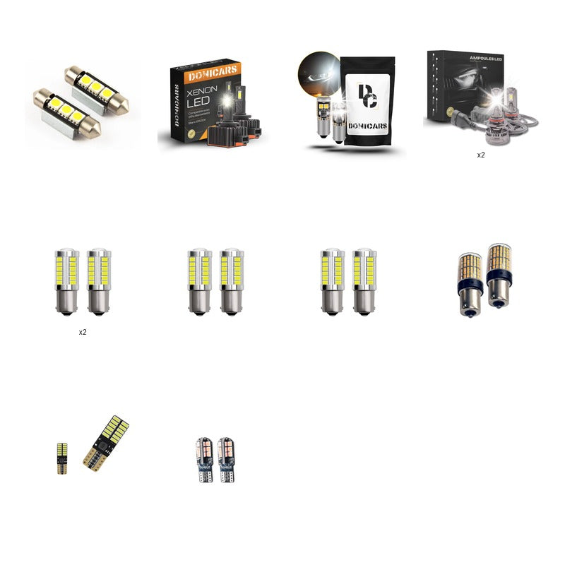 Anabbaglianti, Abbaglianti, Luce di posizione, Fendinebbia anteriore, Indicatore anteriore, Indicatore laterale, Indicatore posteriore, Luce di retromarcia, Luce retronebbia, Luce targa, Luce di posizione posteriore, Luce freno, Luce bagagliaio, Indicatore porta aperta